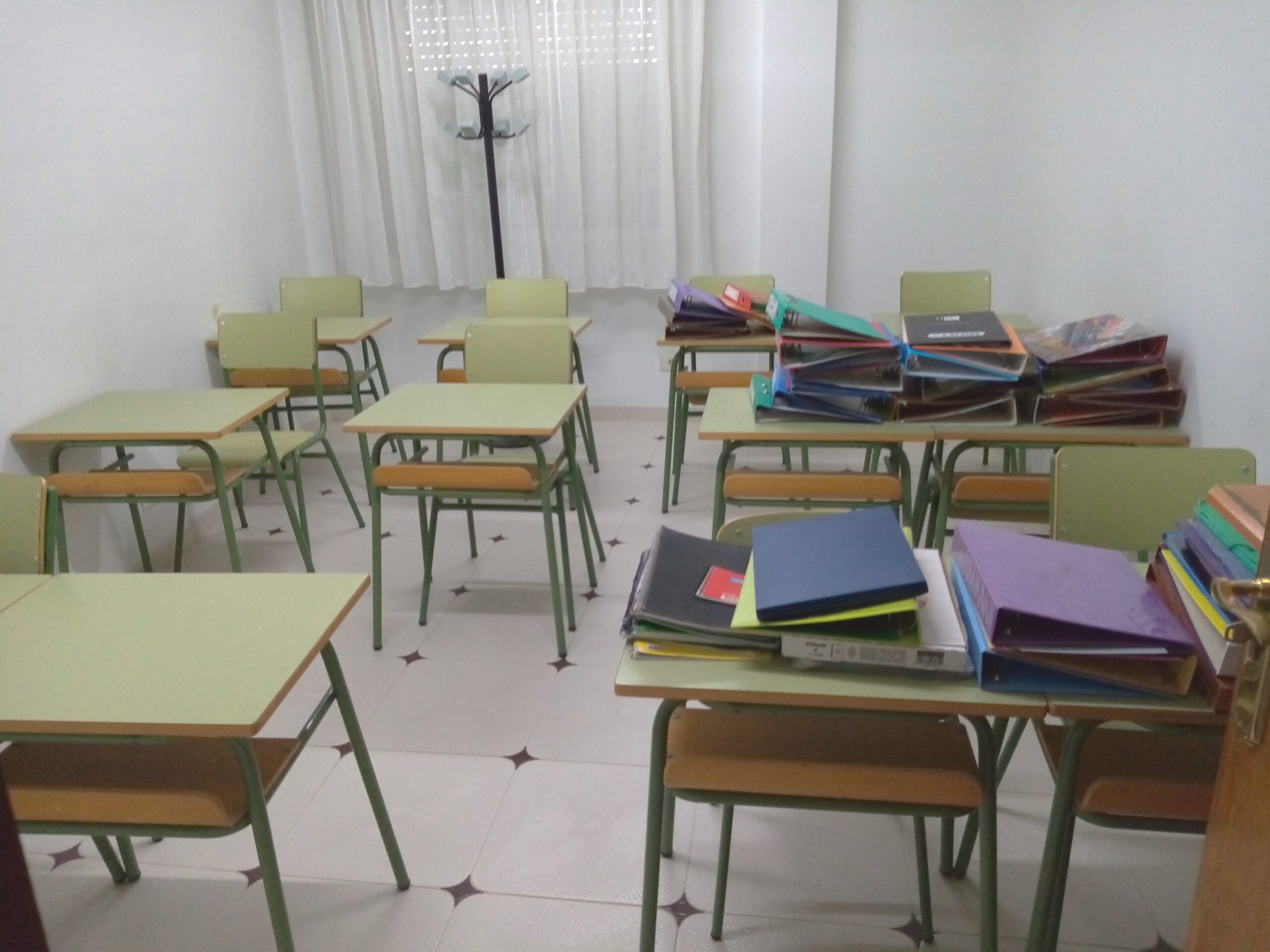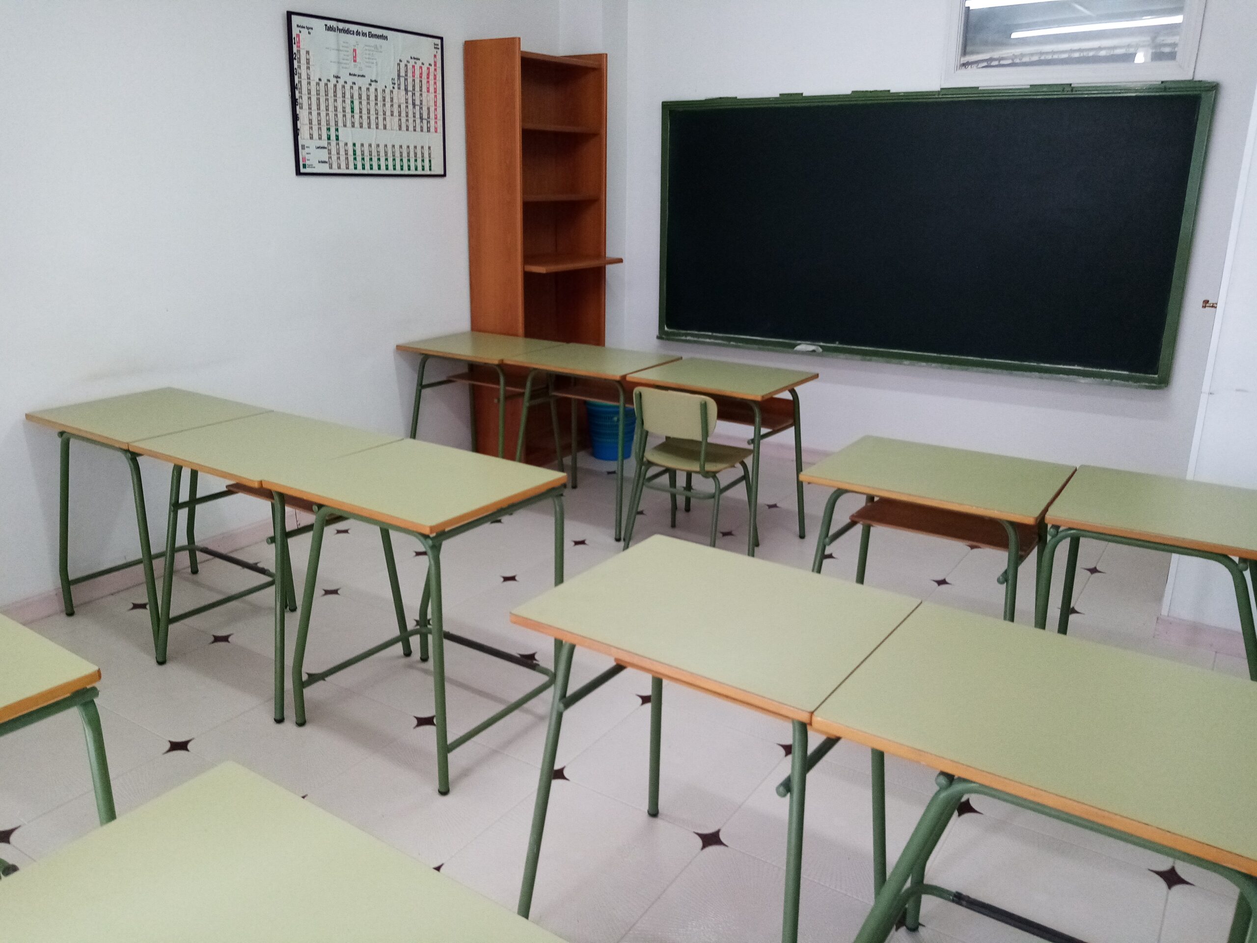 🔹 Mobiliario incluido: mesas, sillas, pizarra